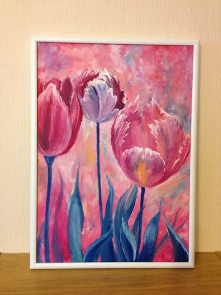 Яркая и романтическая картина подойдет для девичьей комнаты или спальни. Картину можно повесить и без рамы, т.к. торцы окрашены.