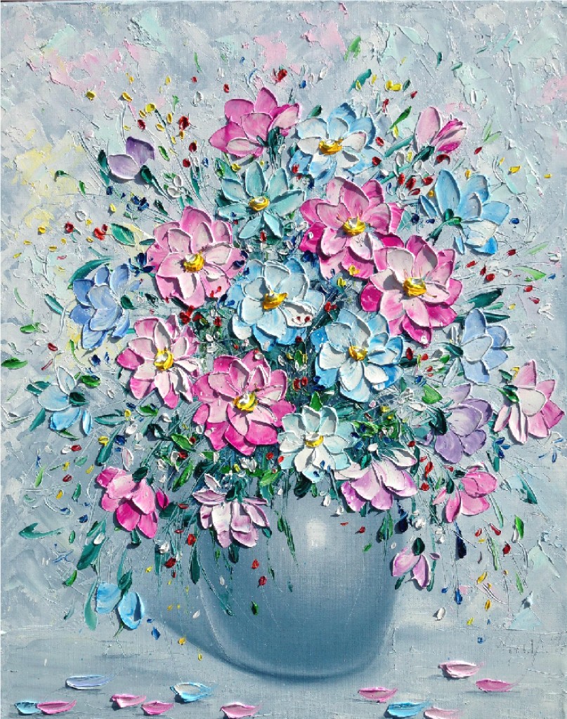Цветы в вазе. Объёмная живопись.Авторский стиль