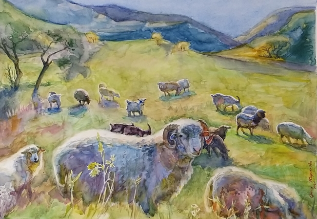 Первая. вид со спины. Старый седой человек раскинув руки стоит на вершине горы. Волосы его развиваются, он медленно рассыпается в прах. вторая. начало прошлого века. Несколько ...