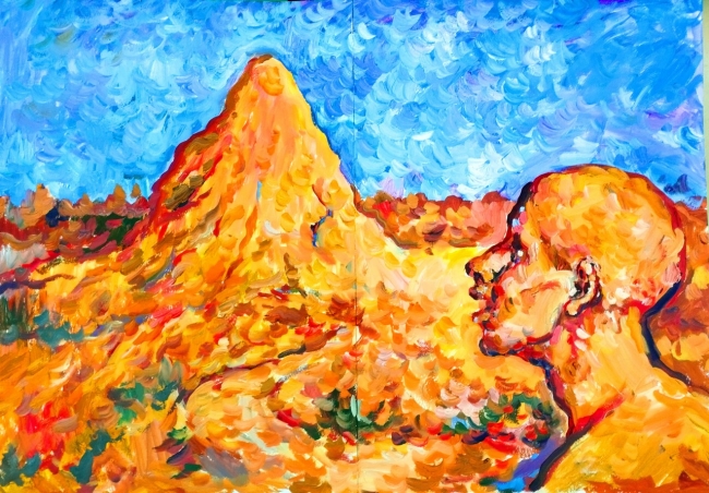 Первая. вид со спины. Старый седой человек раскинув руки стоит на вершине горы. Волосы его развиваются, он медленно рассыпается в прах. вторая. начало прошлого века. Несколько ...