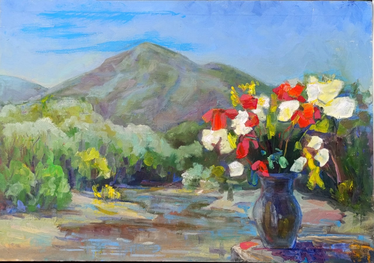 Кувшин с цветами у подножия горы Тхача-гочук. Серия «натюрморт под открытым небом». Пленэр с доработкой ZhNataly