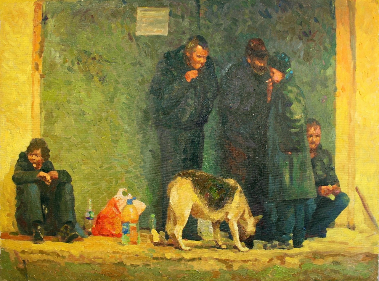 Первая. вид со спины. Старый седой человек раскинув руки стоит на вершине горы. Волосы его развиваются, он медленно рассыпается в прах. вторая. начало прошлого века. Несколько ...
