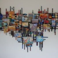 Работа под названием "Миражи или Междометья" состоит из разных душевных состояний выраженных через цвет и динамику мазка. Цветовые модули соединены в единый организм- конструкцию, где они взаимодействуют между собой. Создавалась в течение всего года экспериментальным путём.
