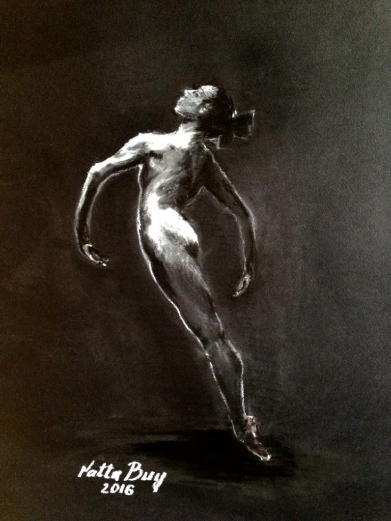 на черномгофрированном картоне мел, уголь