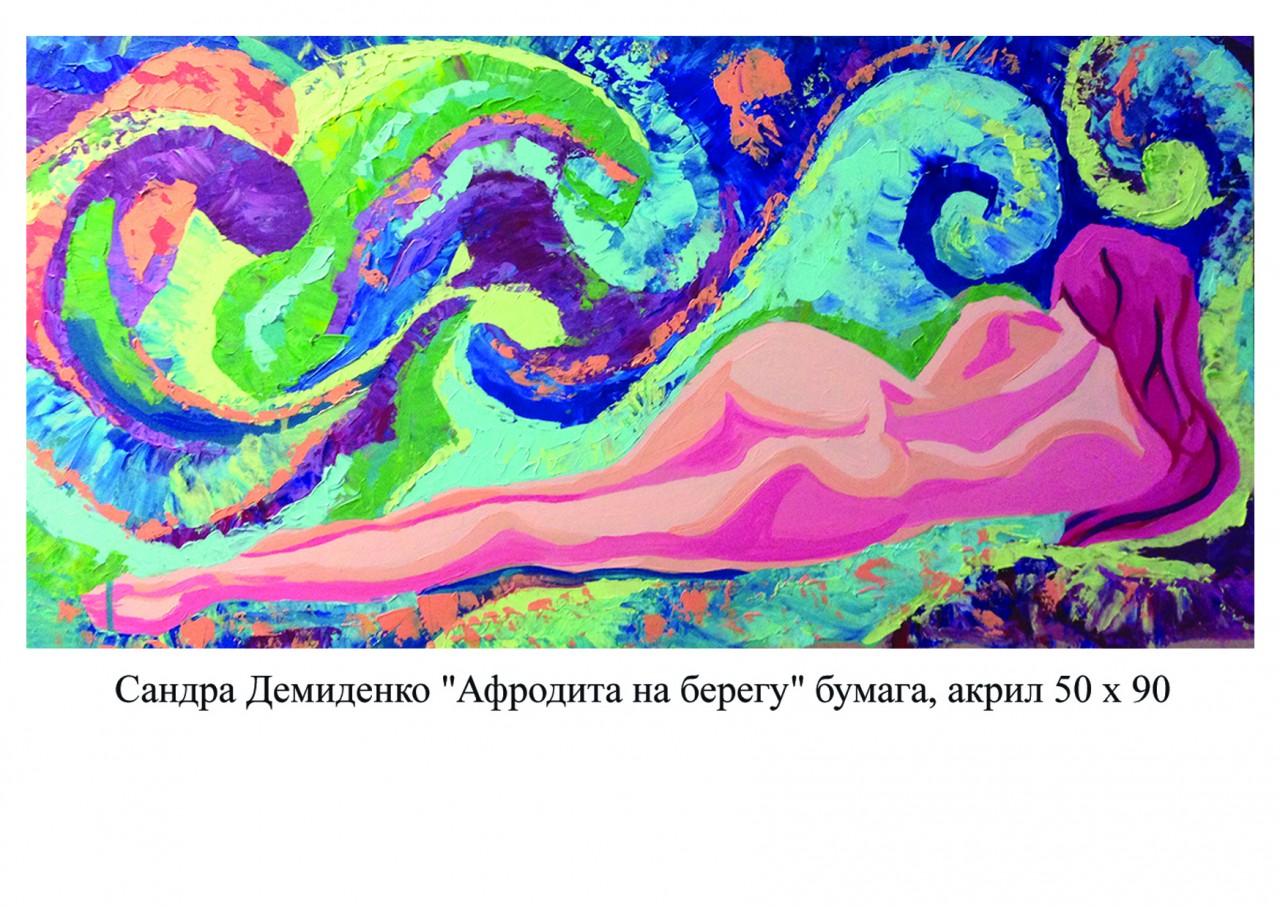 Афродита отдыхает на берегу. а сквозь волн за ней подглядывает Сатир.