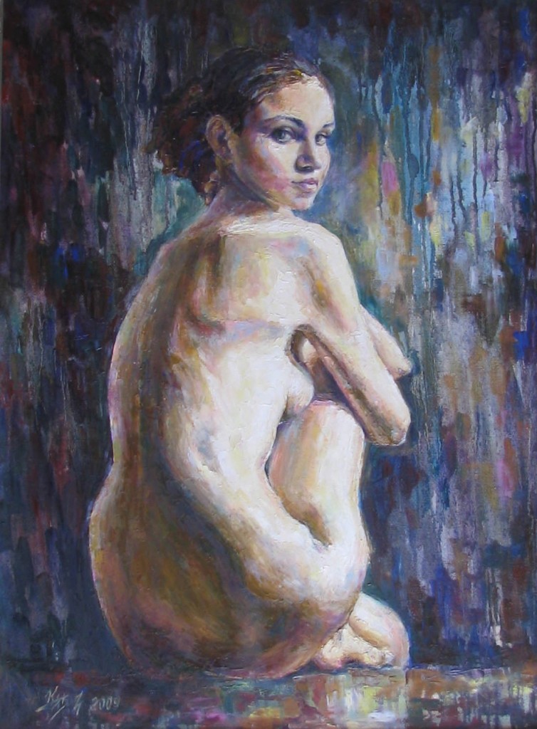 На картине изображен силуэт обнаженной девушки, напоминающий