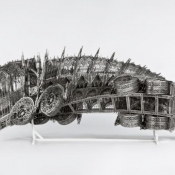 Созданию каждого такого арт-объекта предшествует длительная подготовка и разработка. Вслед за фантазией наступает очередь совершенно прагматическим задачам: разработка эскиза в 3D-редакторе и детального чертежа всех конструкций. Наконец - отливка деталей и сваривание будущего ажурного скелета.