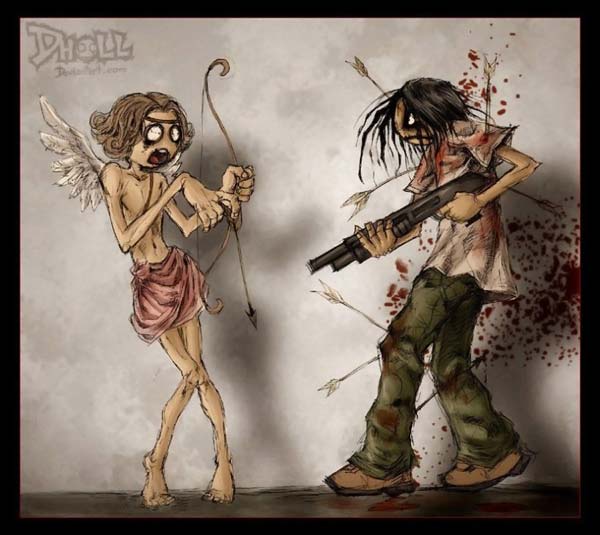 Потрясающие по своей эмоциональности работы давно завоевали популярность у многочисленных поклонников, кочуют из журнала в журнал, с сайта на сайт, охотно используются в качестве аватаров хроническими депрессариками или теми, кого временно настигла тоска зелёная от несправедливости бренного мира. Сам Dholl с неодобрением высказывается по поводу этого размножения своих работ в сети, и всё же не удержусь – пополню коллекцию арта на этом сайте именно его мрачными рисунками.