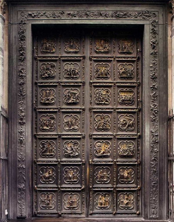 Мы уже писали о бронзовых дверях "Врата Рая", украсивших архитектурный облик Флорентийской Баптистерии во Флоренции, от талантливейшего скульптора Лоренцо Гиберти. Он посвятил 23 года своей жизни на разработку и создание этих невероятно красивых дверей, навсегда прославив своё имя. Его работа настолько хороша, что, опасаясь за судьбу дверей и панелей, которыми они украшены, было принято решение заменить оригинал точной копией, поскольку однажды, во время наводнения, несколько панелей уже были потеряны навсегда, и пришлось восстанавливать их по сохранившимся эскизам автора.