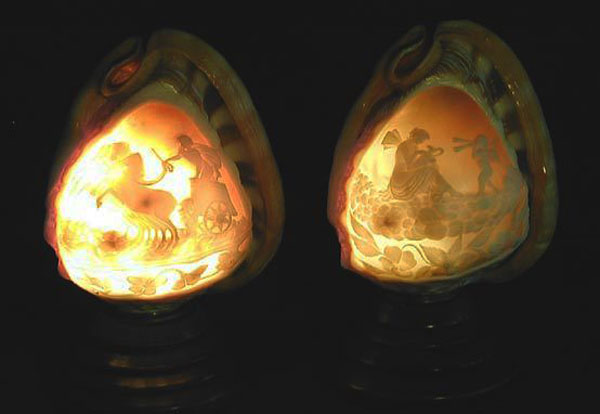 Геммы, вырезанные из перламутра, однако, намного более хрупкие, чем каменные. Более того – их нужно беречь от солнечного света, ведь известно, что жемчуг, который так же состоит из перламутра, очень быстро разрушается под действием воздуха и солнечных лучей, темнеет и покрывается трещинами. То же самое происходит и с геммами из раковин.