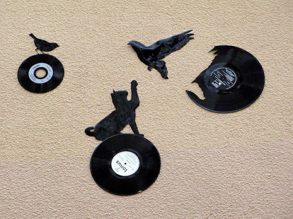 Лион, Франция – родина этого художника, который впервые появился на граффити-арене в 1996 году. Он повторно использует черные виниловые пластинки в качестве силуэтов тех животных, которые наделены прекрасной возможностью летать. Каждая инсталляция представляет различные сцены побега и свободу от жестких бетонных стен. Свои творения художник явно создавал под впечатлениям от окружающей городской среды и тех существ, что в ней обитают.