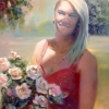портрет женщина солнечная погода цветы розы блондинка импрессионизм улыбка