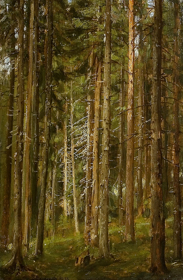 Глубокое понимание природы воспитал в будущем художнике отец, сельский священник М.В. Васнецов. Уже в юные годы В.М. Васнецов отличался особой наблюдательностью и, по воспоминаниям его младшего брата Ап.М. Васнецова, много рисовал «по впечатлению». Из ранних работ на выставке представлены этюды «Вятские места» (1870-е) и «Хвойный лес» (1874; оба — Дом-музей В.М. Васнецова).